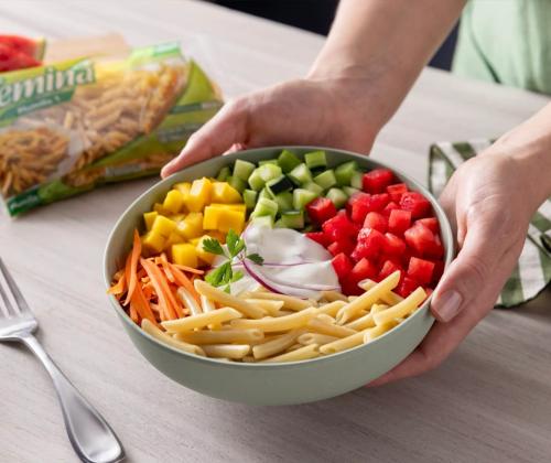 1. Cuece la Plumilla Yemina® según las instrucciones del empaque. Escurre y reserva.